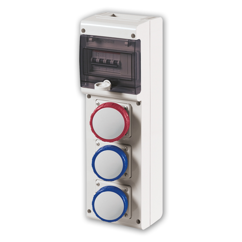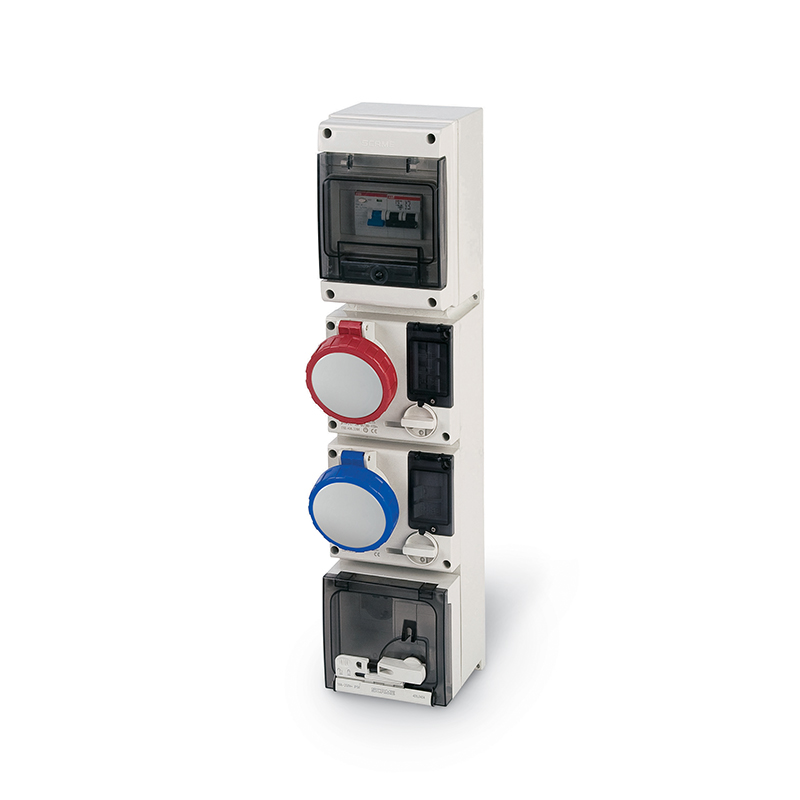 Sistema modulare di prese industriali interbloccate a sviluppo verticale